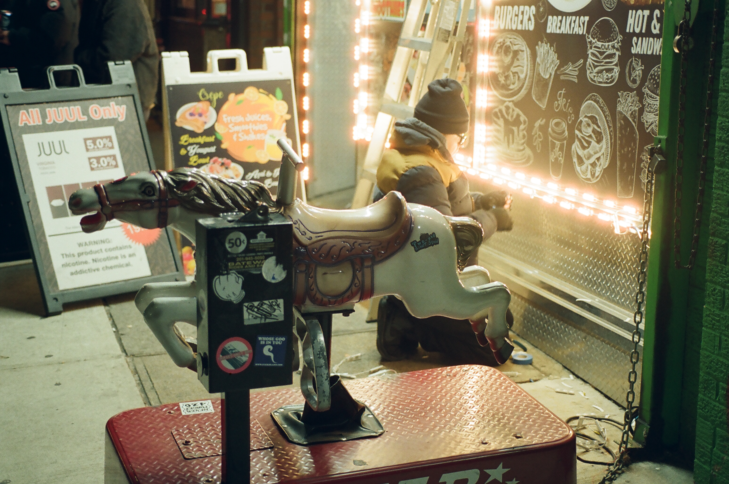 His films explore the absurdism of human nature through the genre of horror/comedy or experimental drama. He also works in the medium of street photography; in digital but mostly 35mm film. He and his partner live together in Brooklyn with their two tuxedo cats.